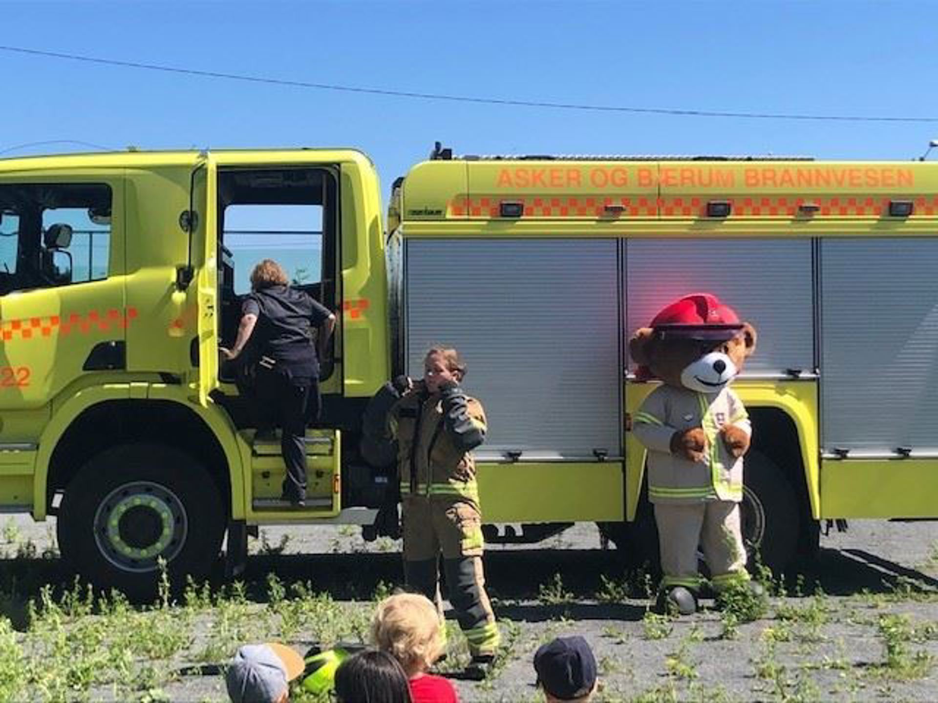Brannbil og Bjørnis på besøk i Barnas Hus Gullhella